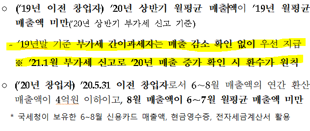 수중의 돈은 지금 없습니다. 그러나 판단의 근거는 과거 매출자료입니다. 정서적 괴리감은 물론 판단의 근거가 되는 기간에 대한 괴리감도 소상공인들에게 고통으로 다가온다는 판단을 했으면 합니다.